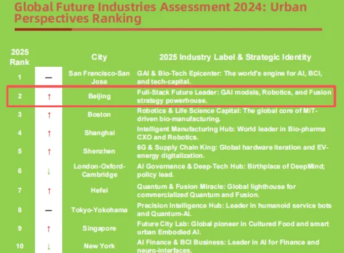 北京,全球城市未来产业竞争力排名第二!